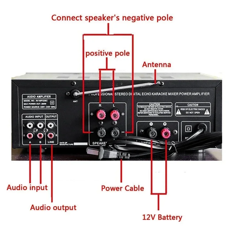 2000W bluetooth Audio Power Amplifier HiFi Amp Speaker 12V AV Amp Speaker Remote Control For Car Home Square Dancing 2.0 Channel